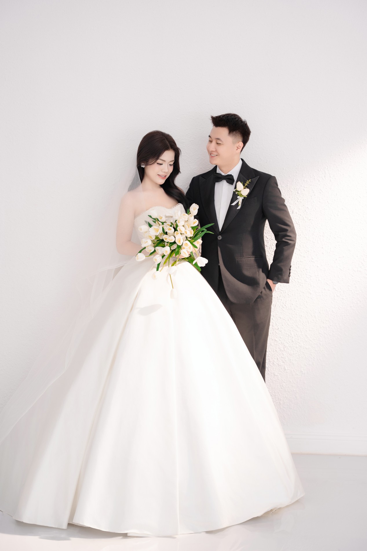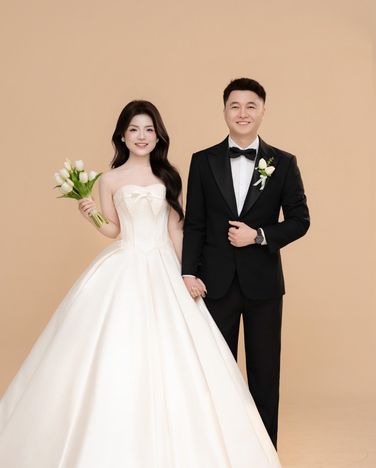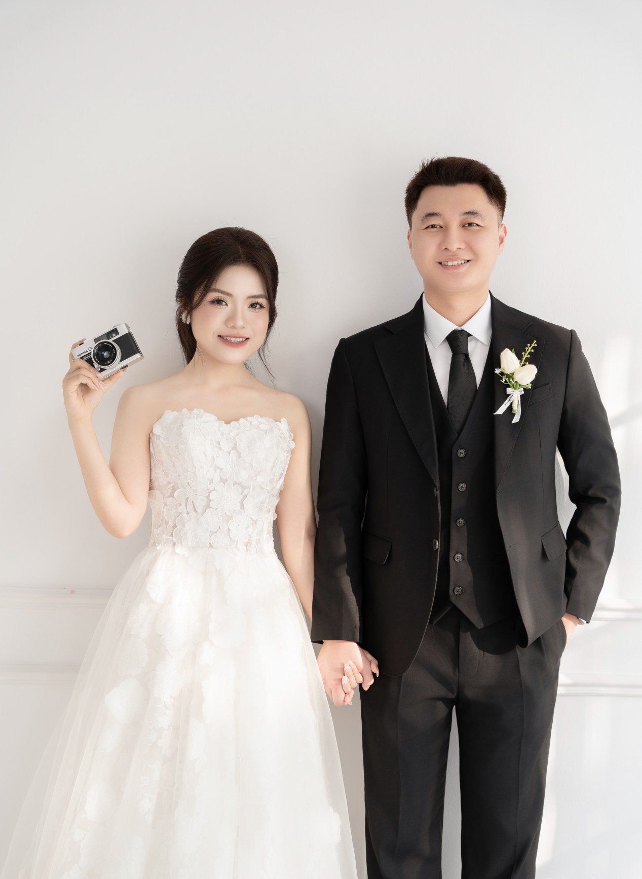 Chú rể là người hướng nội, điềm tĩnh và chân thành. Dù ít nói, anh luôn lắng nghe và là chỗ dựa vững chắc cho cô dâu của mình.